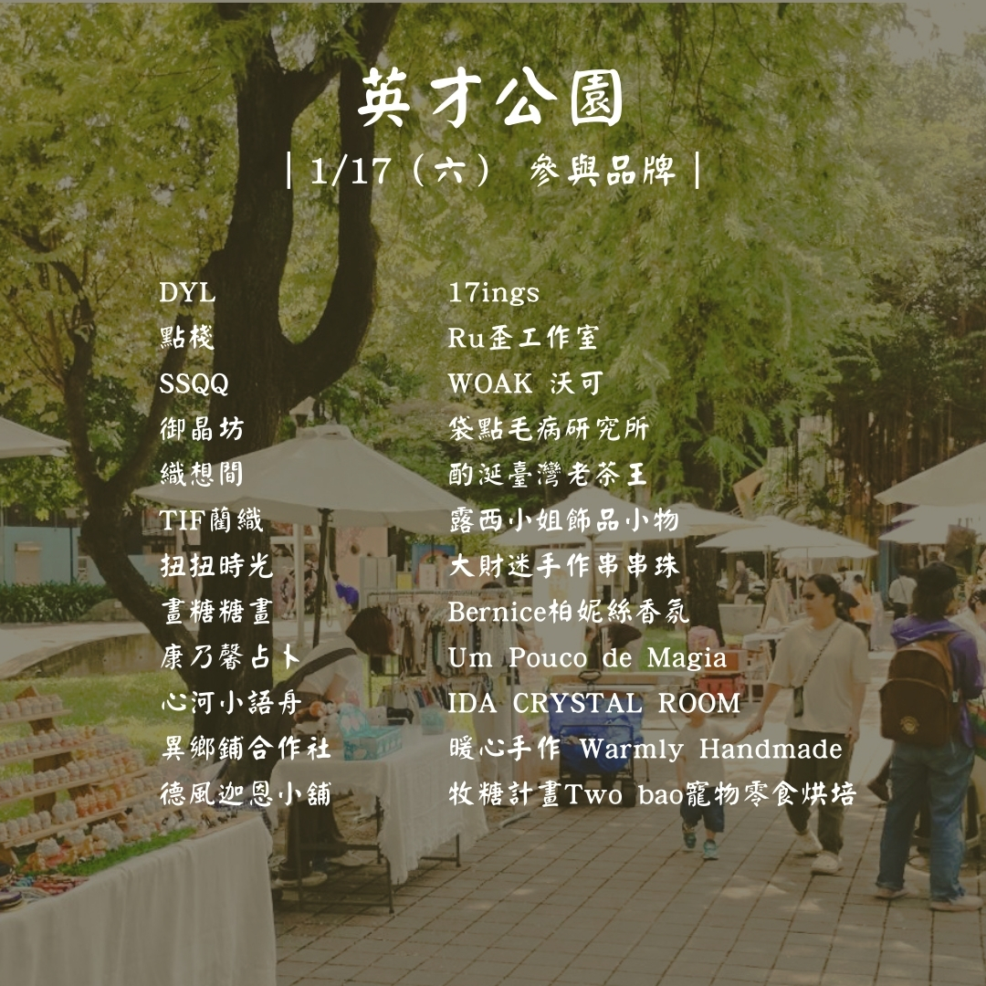 【市集資訊】臺中女子市集|115/1/17-18|英才公園