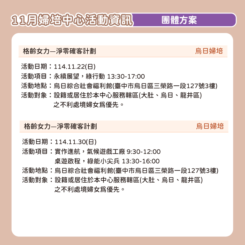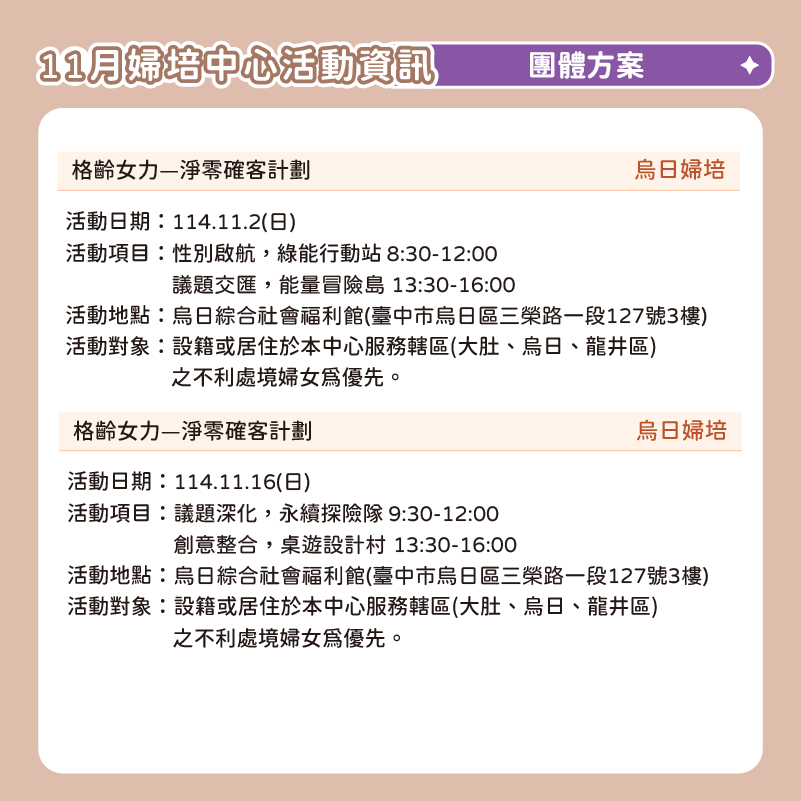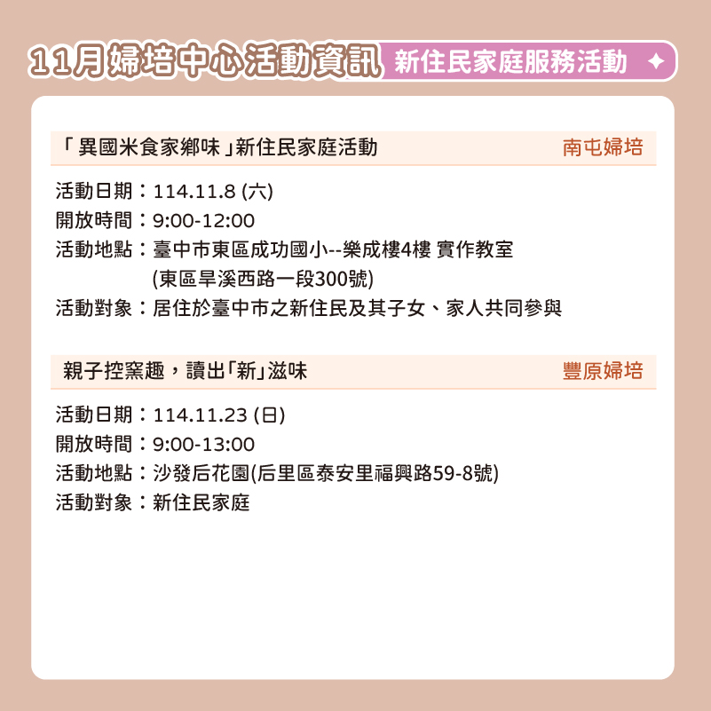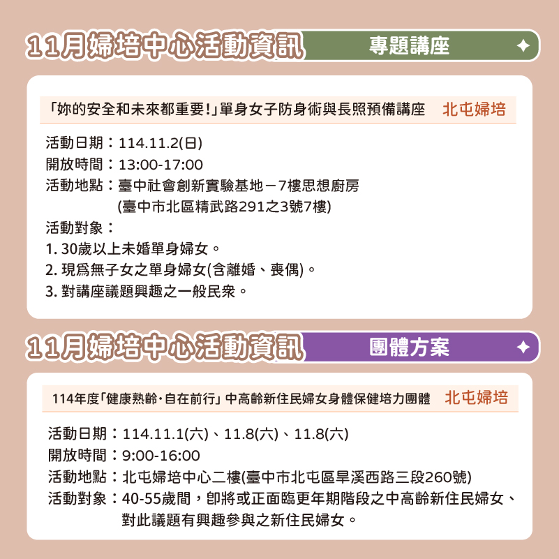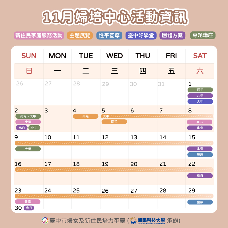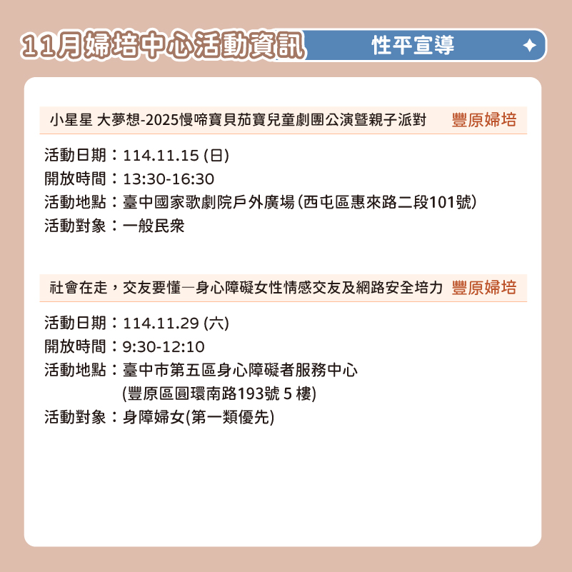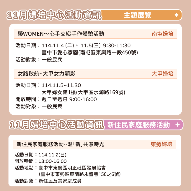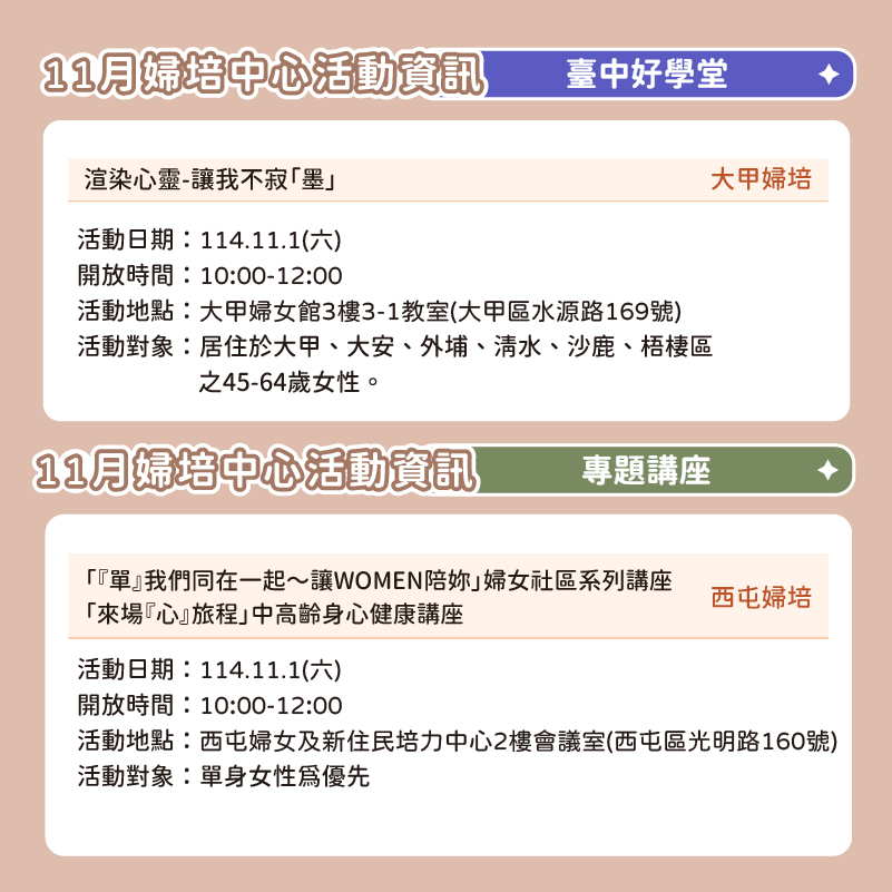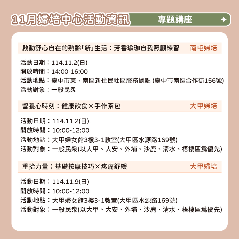 📅 2025臺中婦培中心 11月活動資訊 📅