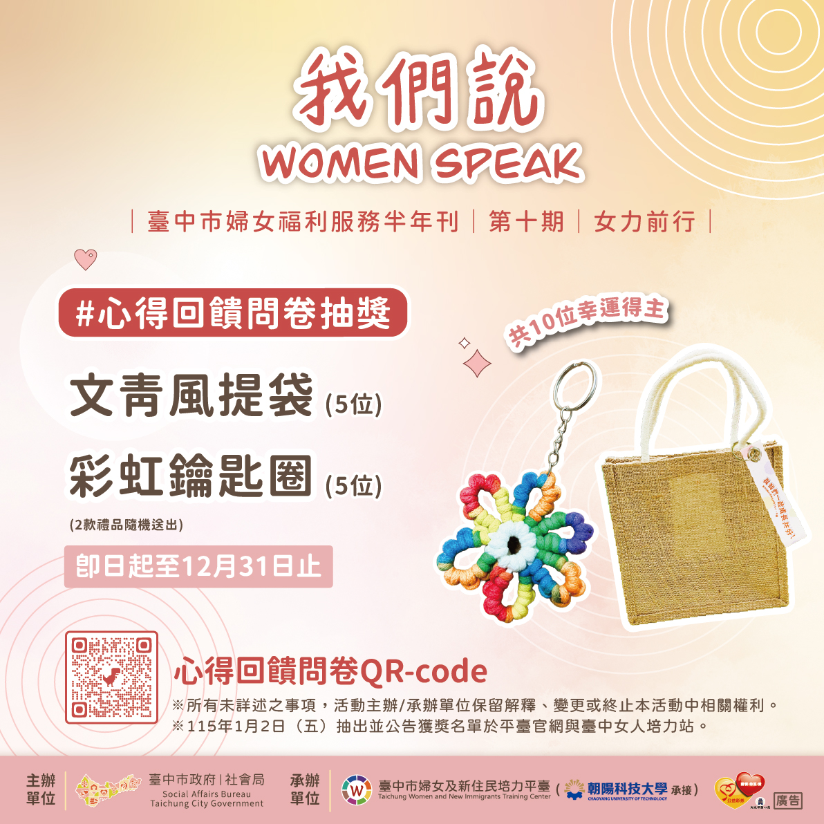 📌獲獎及領取方式:活動截止日後,於115年1月2日(五)抽出並公告10位獲獎者,